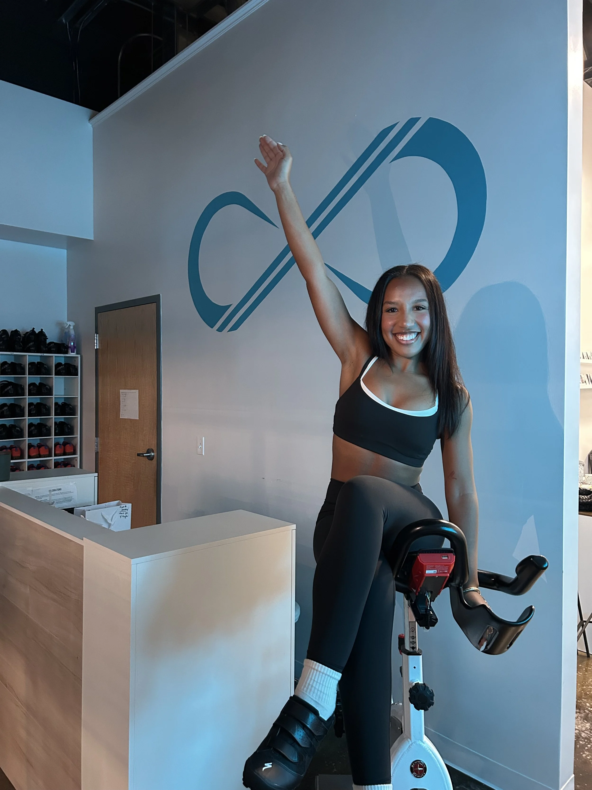 Maddie is a light when she walks in any room. She has years of experience in rhythmic cycling. She loves good beats, good vibes, and has intention and reason behind each of her songs and moves on the bike.